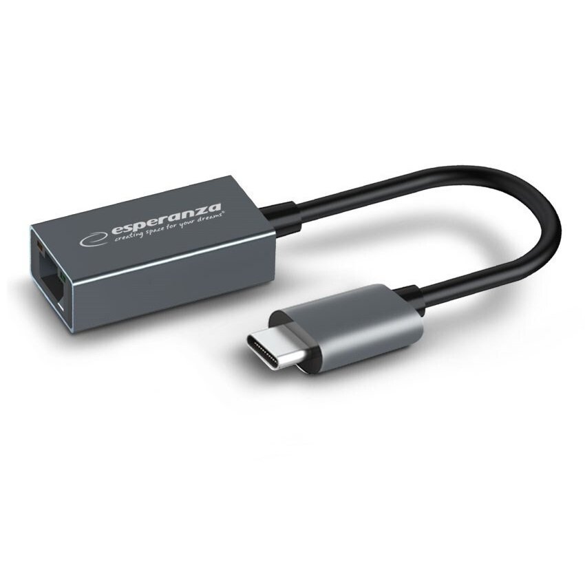 Ο USB αντάπτορας δικτύου της εταιρείας Esperanza συνδέεται σε μια θύρα USB-C του υπολογιστή ή του laptop σας και τη μετατρέπει σε θύρα ethernet, με ταχύτητες έως και 1000Mbps. Είναι χρήσιμος σε υπολογιστές που δεν διαθέτουν θύρα ethernet, δίνοντας την ευχέρεια να αποκτήσετε ενσύρματη πρόσβαση στο διαδίκτυο.