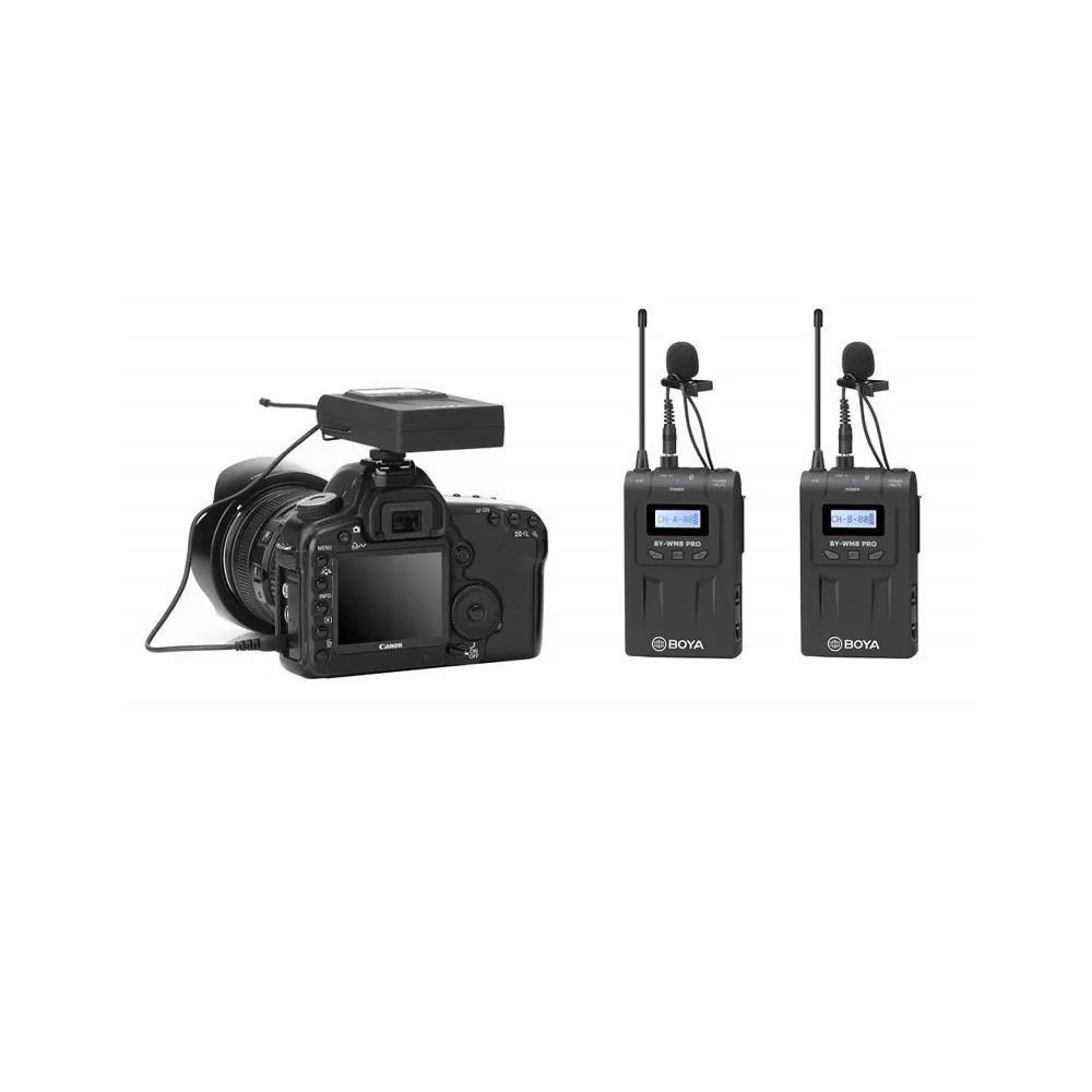 Εξαιρετικό ασύρματο σύστημα μικροφώνου UHF για διπλές πηγές ήχου Το σετ BY-WM8 Pro-K2 περιλαμβάνει δύο πομπούς και έναν δέκτη. Το όλο σύστημα είναι ιδανικό για DSLR, Mirrorless, Pro Video και όλους τους τύπους φωτογραφικών μηχανών ή φορητών συσκευών εγγραφής ήχου με είσοδο μικροφώνου 3,5 mm ή XLR. Είναι ιδανικό για την καταγραφή συνεντεύξεων, κινηματογραφικών διαλόγων, ηχογραφήσεων, τηλεοπτικών εκπομπών, συλλογής ειδήσεων, vlogging, βίντεο στο YouTube και πολλά άλλα. Επαγγελματικά χαρακτηριστικά με απλά βήματα Το BY-WM8 Pro K2 χρησιμοποιεί το φάσμα UHF (Ultra High Frequency), το οποίο σας βοηθά να αποφύγετε τις παρεμβολές. Υπάρχουν 48 διαθέσιμα κανάλια, τα οποία επιτρέπουν στους χρήστες να λειτουργούν ταυτόχρονα πολλά σετ συστημάτων BY-WM8 Pro χωρίς προβλήματα. Και η εμβέλεια λειτουργίας μπορεί να φτάσει έως και τα 100 μέτρα (χωρίς εμπόδια). Το σύστημα είναι εξαιρετικά εύκολο στη χρήση και λειτουργεί αμέσως από το κουτί. Απλώς συνδέετε το μικρόφωνο, ενεργοποιείτε την τροφοδοσία και ξεκινάτε. Εύκολα αναγνώσιμες οθόνες LCD Οι ευανάγνωστες οθόνες LCD στον πομπό και τον δέκτη σας επιτρέπουν να κάνετε γρήγορες ρυθμίσεις στα διαισθητικά μενού στα πιο φωτεινά ή σκοτεινά περιβάλλοντα. Η λειτουργία αυτόματου κλειδώματος LCD αποφεύγει το τυχαίο άγγιγμα κατά τη διάρκεια επαγγελματικών λήψεων ή κανονικής χρήσης.