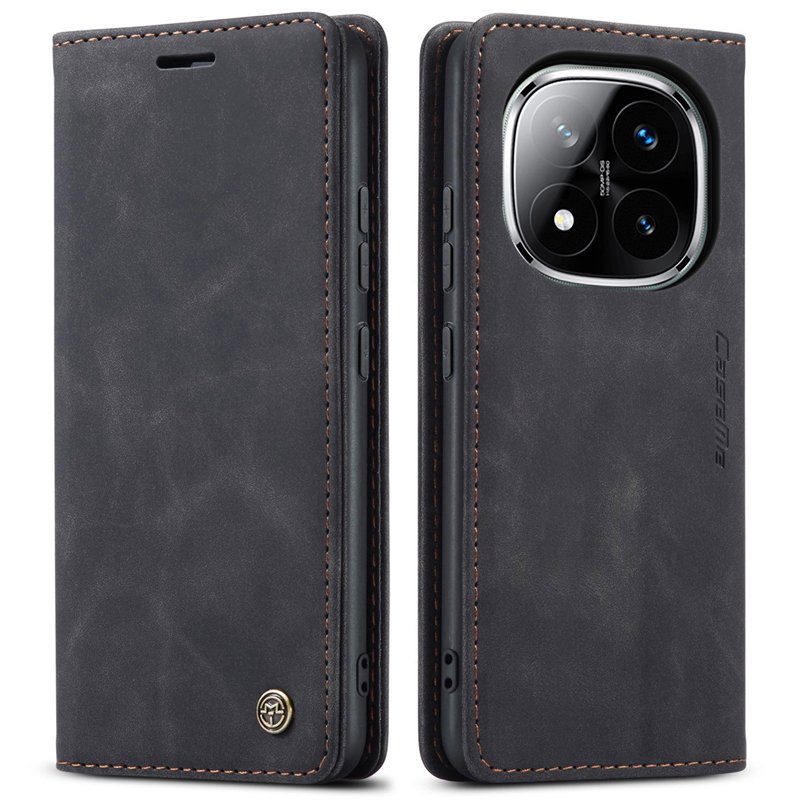 CaseMe-013 TPU Business Style Vintage Matte Horizontal Flap Leather Case for Xiaomi Redmi Note 14 Pro 5G/Note 14 Pro+ 5G/Poco X7 Black