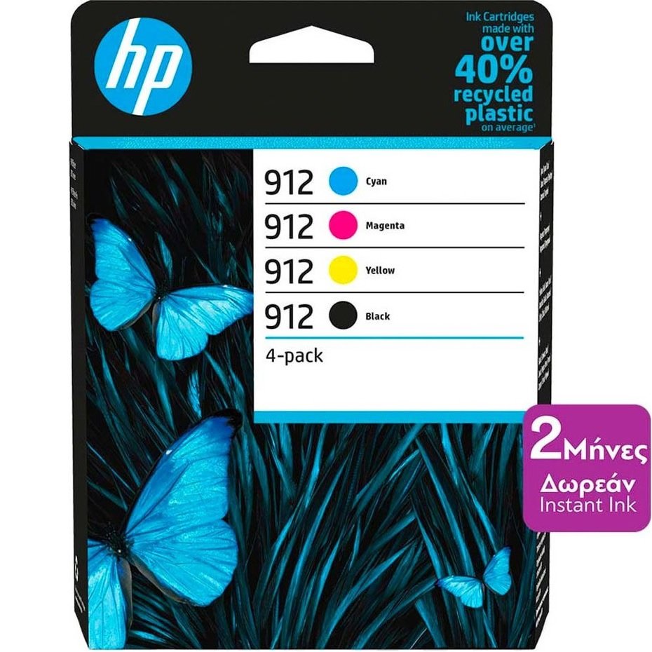 HP 912 Πακέτο 4 Μελανιών Εκτυπωτή InkJet Κίτρινο / Κυανό / Ματζέντα / Μαύρο (6ZC74AE)