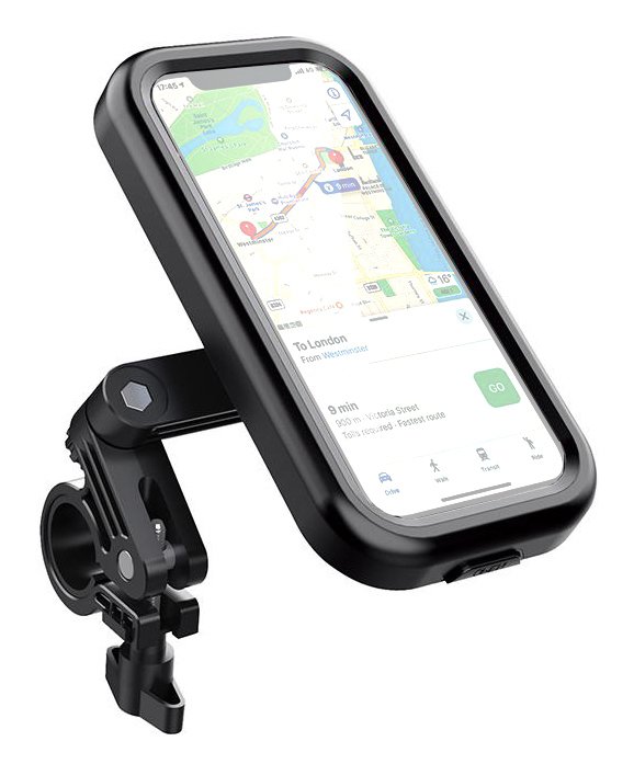 Βάση για smartphone της KAKUSIGA με στήριξη σε τιμόνι ποδηλάτου, ηλεκτρικού πατινιού ή μηχανής.