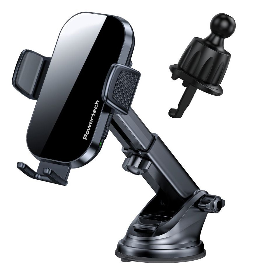 POWERTECH ασύρματος φορτιστής & βάση αυτοκινήτου PT-1271, 15W, μαύρος