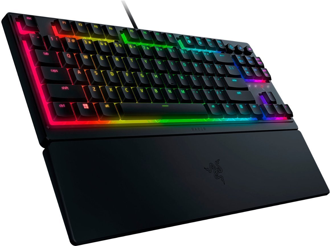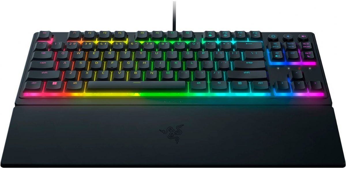 SLIM. CLICKY. ΕΡΓΟΝΟΜΙΚΟ. Γνωρίστε το Razer Ornata V3 Tenkeyless – ένα εργονομικό gaming πληκτρολόγιο χαμηλού προφίλ που τροφοδοτείται από το Razer Chroma™ RGB. Με νέο εξαιρετικά λεπτό σχήμα, πιο ανθεκτικά Keycaps και μοναδικούς διακόπτες mecha-membrane, ενισχύστε τη δουλειά και το παιχνίδι σας με ένα υβριδικό πληκτρολόγιο που συνδυάζει τα καλύτερα και από τους δύο κόσμους. LOW PROFILE ΠΛΗΚΤΡΑ Εργονομική Gaming εμπειρία Με λεπτότερα Keycaps και πιο μικρό σημείο ενεργοποίησης, απολαύστε φυσική τοποθέτηση του χεριού σας με ένα Ergonomic Low Profile Gaming Gaming που επιτρέπει πολύωρη χρήση με ελάχιστη καταπόνηση. ΔΙΑΚΟΠΤΕΣ MECHA-MEMBRANE ΤΗΣ RAZER Clicky πλήκτρα , μαλακό άγγιγμα Συνδυάζοντας τη γρήγορη ανάδραση ενός μηχανικού διακόπτη με τη γνώριμη αίσθηση ενός συμβατικού πληκτρολογίου, κάθε πάτημα που κάνετε είναι τόσο ικανοποιητικό όσο και ακριβές. ΠΛΗΚΤΡΑ ΜΕ UV ΕΠΙΚΑΛΥΨΗ Βελτιωμένη αντοχή στο ξεθώριασμα και το ξύσιμο Πιο ανθεκτικά από τα κανονικά Keycaps, η επίστρωση UV εξασφαλίζει πιο ανθεκτικά στο ξεθώριασμα των πλήκτρων και μεγαλύτερη προστασία από τη φθορά λόγω συχνής χρήσης. MULTIMEDIA KEYS ΜΕ ΟΠΙΣΘΙΟ ΦΩΤΙΣΜΟ Βολικός έλεγχος Ρυθμίστε τα για παύση, αναπαραγωγή, παράλειψη και ρύθμιση των πάντων, από τη φωτεινότητα έως την ένταση του ήχου – η απόλυτη άνεση καθώς απολαμβάνετε την ψυχαγωγία σας. ΜΑΓΝΗΤΙΚΟ ΣΤΗΡΙΓΜΑ ΚΑΡΠΟΥ ΜΑΛΑΚΗΣ ΑΦΗΣ Σχεδιασμένο για να κουμπώνει απρόσκοπτα στο πληκτρολόγιο, αυτό το στήριγμα καρπού με μαλακή αφή παρέχει άφθονη άνεση και υποστήριξη για τους καρπούς σας, ιδιαίτερα ζωτικής σημασίας για μεγάλες περιόδους χρήσης. 8 ΖΩΝΕΣ ΦΩΤΙΣΜΟΥ RAZER CHROMA™ RGB Προσαρμόσιμος φωτισμός Με 16,8 εκατομμύρια χρώματα και μια σειρά από εφέ RGB για να επιλέξετε, εξατομικεύστε το πληκτρολόγιο και αποκτήστε πρόσβαση σε δυναμικά εφέ φωτισμού για εκατοντάδες παιχνίδια που είναι ενσωματωμένα στο Chroma. TECH SPECS