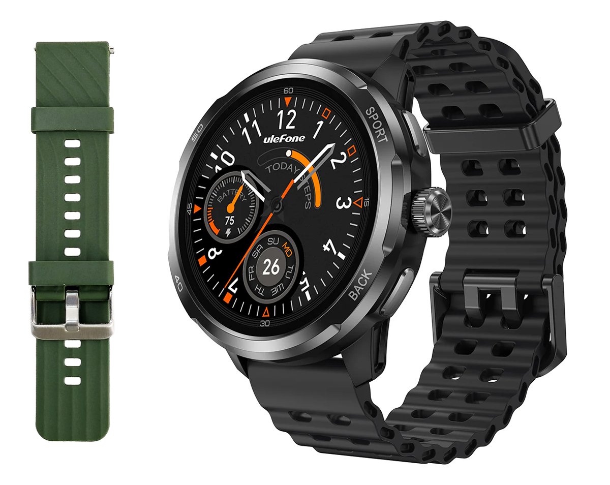 ULEFONE smartwatch Armor Watch Pro, 2x λουράκια, heart rate, 1.50″ AMOLED, GPS, 5 ΑΤΜ/IP68/IP69K/MIL-STD-810H, μαύρο
