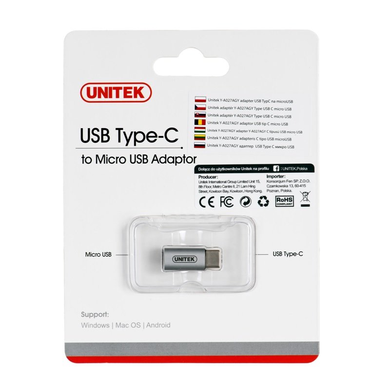 UNITEK Y-A027AGY cable interface/gender adapter USB C Micro USB Grey